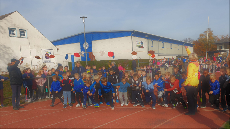 Nach einer Erwärmung liefen alle Schüler und Schülerinnen sportliche zwei Runden. Ein großes Lob an alle, die diesen 800 m langen Lauf in den Herbst geschafft haben.