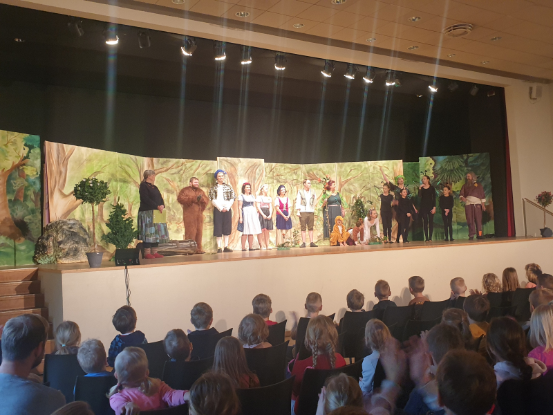 Die Schüler und Schülerinnen der 1. Klasse waren fasziniert vom Märchen "Schneeweißchen und Rosenrot". Vielen Dank an den Förderverein, der allen Kindern dieses Erlebnis ermöglicht hat.